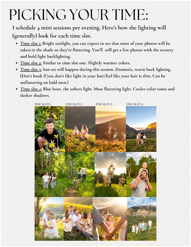 First of all, lets talk about what you can expect–lighting wise–from each time slot.